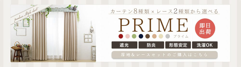 人気の厚地カーテン「プライム」と高機能レースがお得なセットに!安心の日本製カーテンセットです。