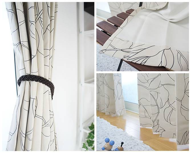 百合のラインをなぞった、葉柄・花柄のやわらかな曲線がやさしいロハスな印象の北欧スタイルカーテン。