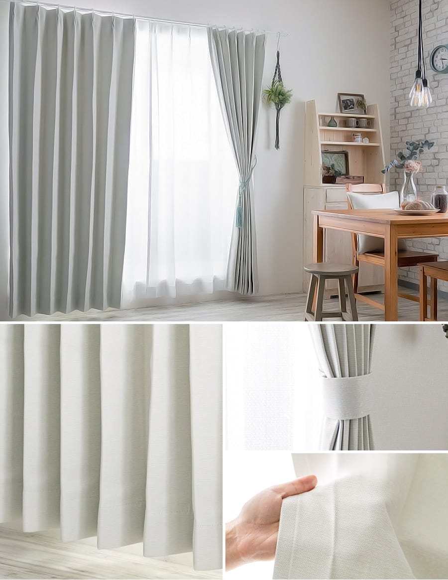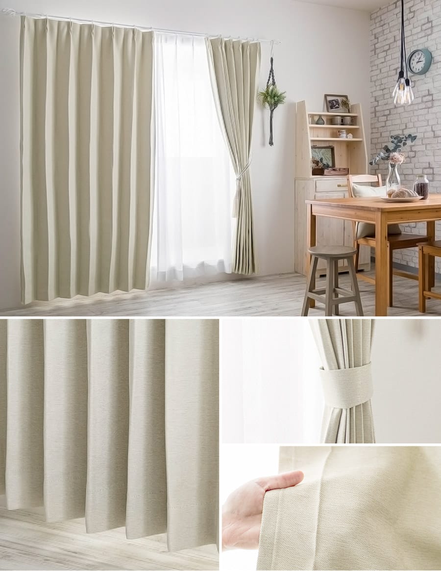 | 仕様 | タック:タック:1.5倍ヒダ・8cmダブル or 2倍ヒダ・8cmダブル フラット:フラット:フラットテープ・8cmダブル折り返し |