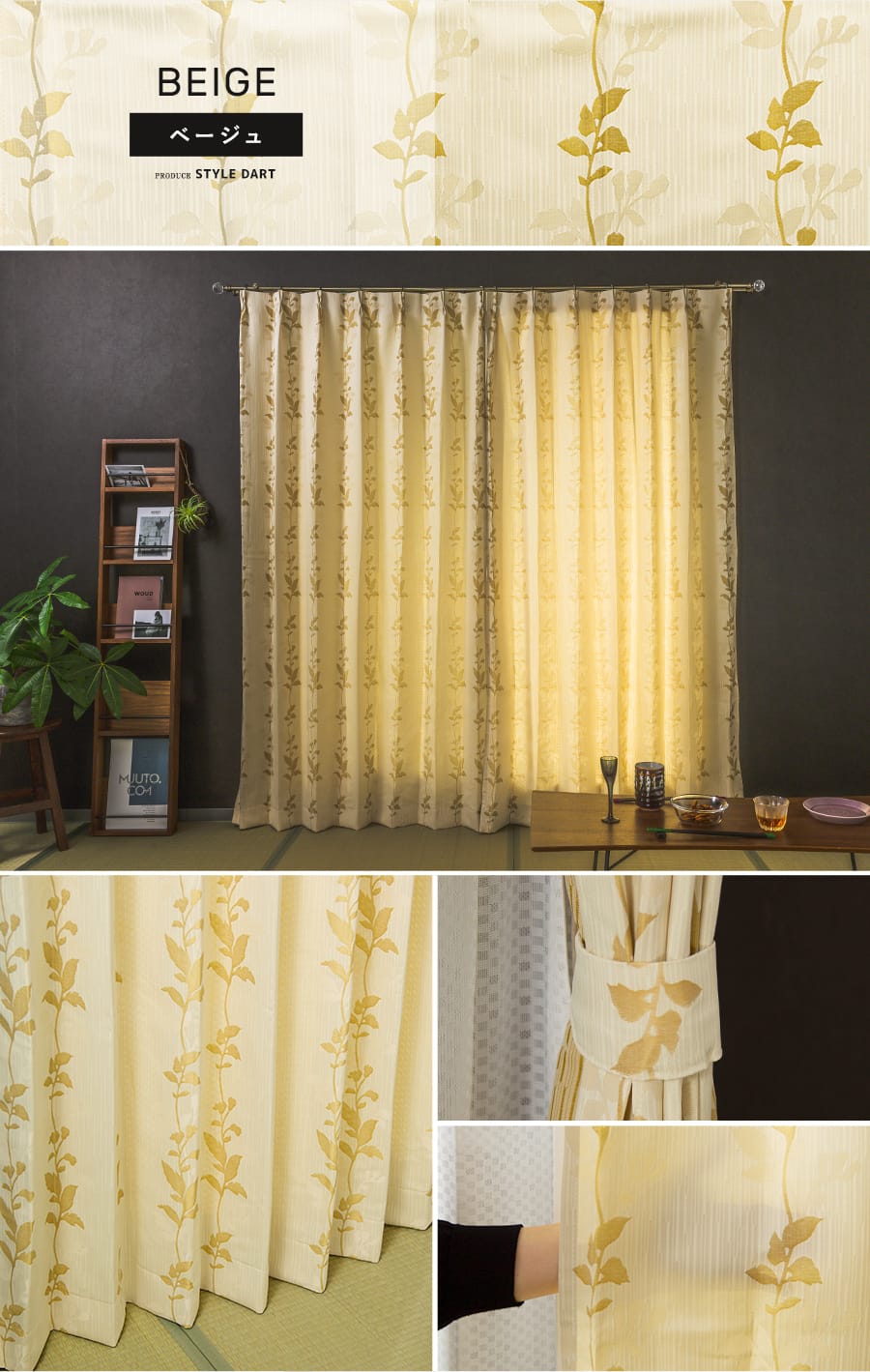 淡く落ち着いた色合いの生地に、植物のシルエットが優雅に伸びるデザイン。明るい雰囲気のベージュと、優しいトーンのブラウンの2色をご用意しました。