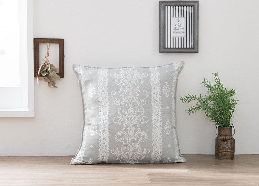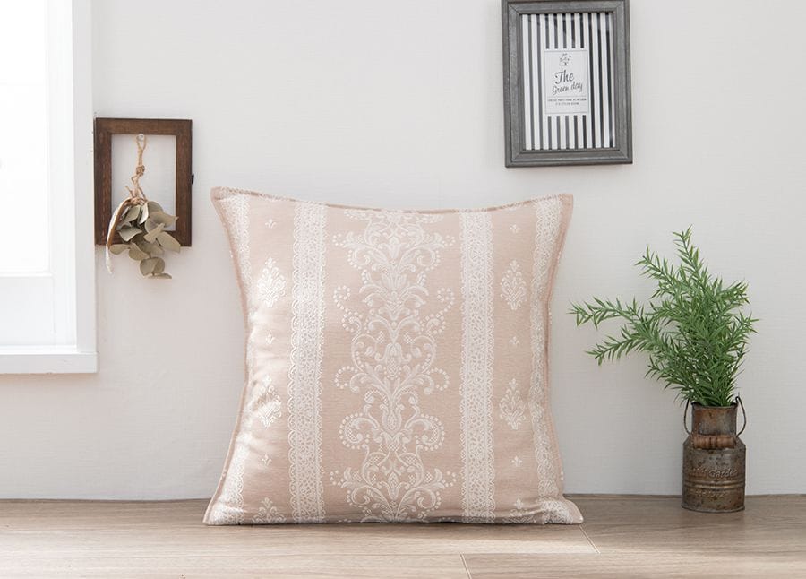 高級感と華やかさのあるジャガード生地を使用。光沢感のある糸を使用おり、光に当たるとキラキラと華やかな印象です。ピンクがかった柔らかな印象のベージュと上品で落ち着きのあるグレーの2色のカラーバリエーションからお選びいただけます。