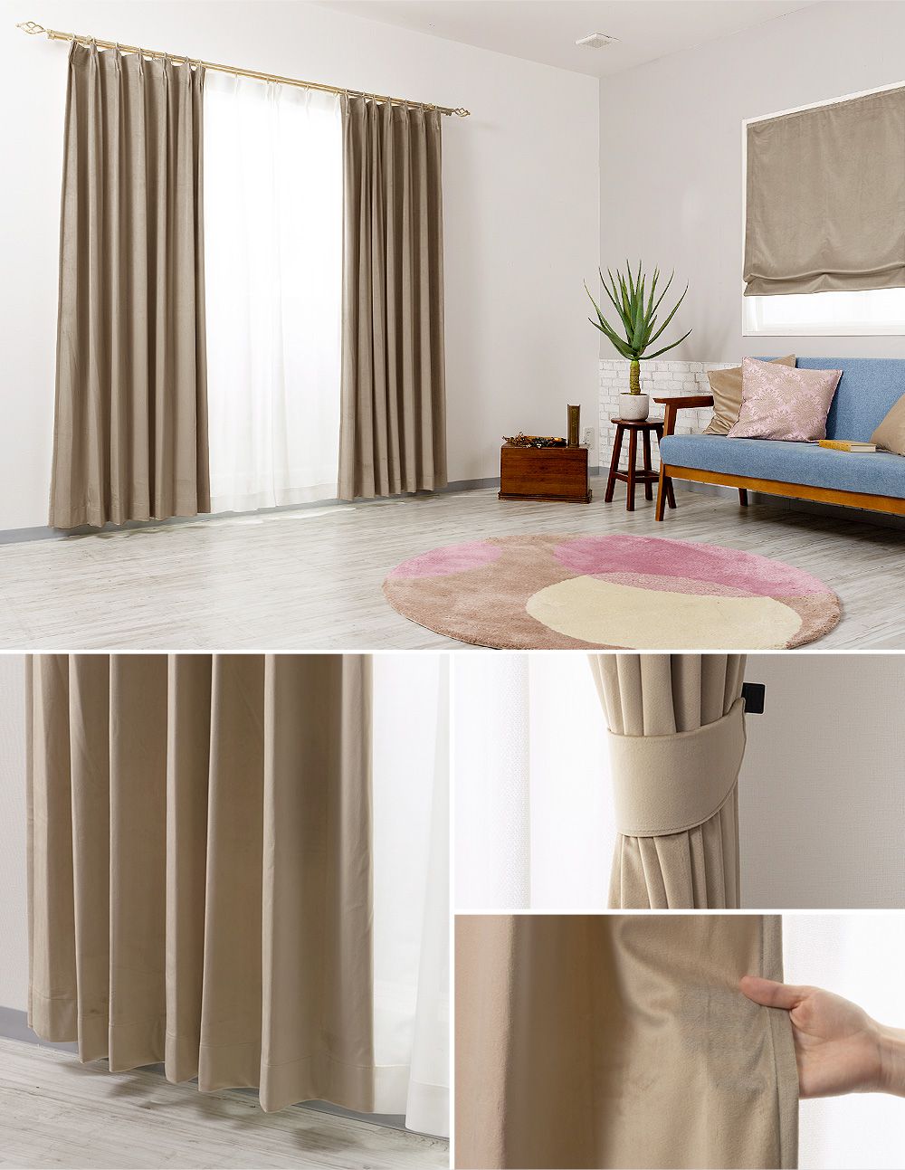 やわらかく密に織られた生地はふっくらとして保温力が高く、冷暖房の効率アップにも。ベロア特有の光沢感があり、上品な空間を演出。