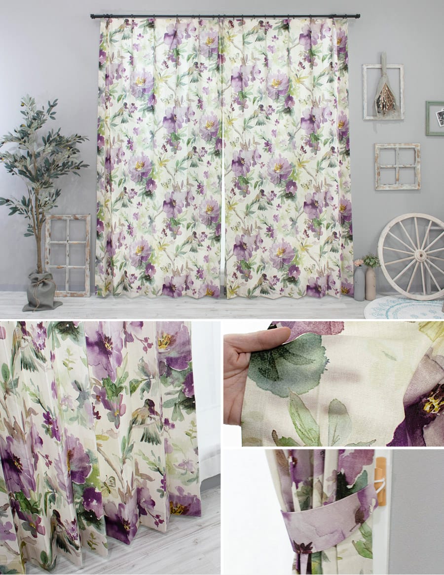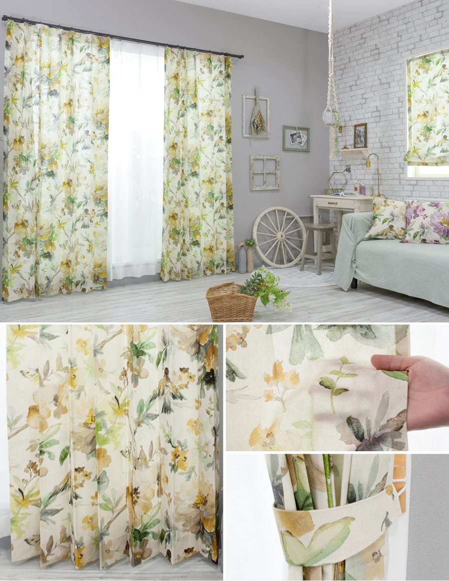 光を取り込むコットン生地は、光を取り入れたいリビングにおすすめ。キッチンや水回りの小窓もお揃いにするとより爽やかに。華やかな花柄なので、女性のお部屋にもおすすめです。